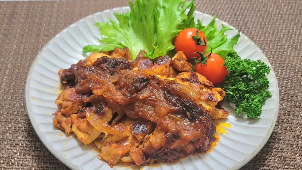本来、豚肉で作るポークチャップを鶏肉に変えて作ってみたところ、とてもジューシーなものが出来上がりました。